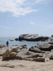大小洞天景区不大,可以坐游览车直接到最里面下车,然后沿海边慢慢走出来,海边的风景还是相当好的,怪石林立,好多拍婚纱照的。大小洞天的海滩礁石多,风景美丽,躺在沙滩椅上看海发呆的好去处