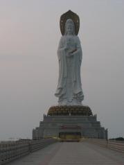 据说这个南山海上观音圣像是国内最高的,这点我倒是不怀疑,因为我在三亚机场起飞时都可以从空中俯瞰到,整座圣像建立在一个小小的人工岛上,通过一座长桥与陆地连接,我常常想如果涨潮了怎办。