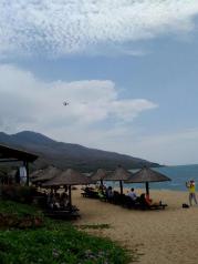 一家人玩了分界洲岛的珊瑚半潜和堡礁潜水,老婆第一次体验开心极了,小孩子太小玩不了水上项目,玩的沙子,总之是一次开心之旅,坐船返回途中看到,船上位置不够了有的游客没位置,工作人员把船上两名其他工作人员叫起来给游客让座,管理很正规