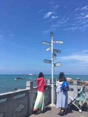 西岛景区的海水很清,第一次见到这么好的水质。岛上有很多水上项目,但没去玩,喜欢悠闲。牛头岭的风景也超美,建议大家一定要去看。一块钱的优惠纳米租车,上午十点来的,接车还是顺利。去了西岛景点,结果网上的二次验证码没发成功,又打电话联系网上,很快就发过来了。顺利登上快艇上西岛。看见蓝天白云好净!!