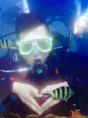 大东海超满意!超划算!先体验的潜水,在码头乘快艇到达不远处的浮船上,当时看到水面上有很多人飘在那很不理解,一打听原来或者是因为恐惧,不敢入水,或者是不习惯用呼吸器下不去。当时正好有一大哥到时间了上船脱装备,本想向他取取经,学习一下经验,谁知这汉子刚才愣是在水上漂了半个小时,水下啥样根本不知道,我也是醉了。观察了一会一般每十个人能真正下到水下的也就是两到三个,剩下的基本都是来背着氧气瓶泡澡或者浮潜的,因为我之前玩过海底漫步,虽然是第一次岛礁潜水,但对水下的恐惧程度不是很高。