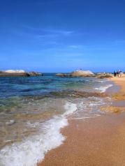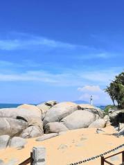 大小洞天景点较东海景区较远,开车一个来小时顺利到达。海蓝是第一次来三亚的感受。沿海环境优雅,都有摇椅,海水透彻。值得推荐!大小洞天在三亚市区的西面,比较远,坐公交25路终点就是景区大门口。景区是狭长形的,来回要走6公里多,不想走的朋友们,可以选择坐游览车到最后一站南极仙翁像,这里的海景不错,人也少。