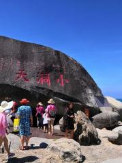 三亚每处景点都非常美,由于行程紧张,大小洞天玩了差不多两个小时。不错,取票购票方便快捷哦。风景很漂亮,非常值得去的景区。小洞天非常好,可以进去空间很大,160的个头能站得直直的。没有必要做电瓶车,一路风景很好,沿海岸线走非常不错。