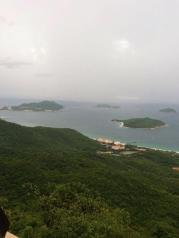 坐公交车到亚龙湾热带天堂森林公园下面,走到公园还有好些距离,从一条通往公园坡子上走大概200米到公园门口,到售票点换了票,进入公园门口,再爬到山上200米地方才坐开往山上的电动车,到那里已经满头汗,坡度非常阧,司机师傅开车那个叫刺激,全是盘山公路,跟过山车一样,要是老人小孩就要注意了,路过鸟巢度假村,都是看了电影非诚勿扰才去,空气好环境也很美,游览是从下往上一个游览,森林公园游览时间不是太长,2小时应该够,在山顶上好多拍婚纱照的新人,去了舒淇走的过江龙,就是人太多,没有办法感受到太多,只想赶紧离开。山顶有很多自助餐厅我们是没有吃,挺贵又不好吃,在山顶可以看到亚龙湾,三亚湾,鸟巢挺不错.试婚房要