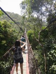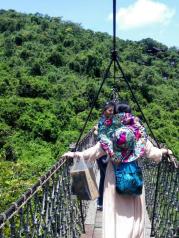 从市区过来亚龙湾热带天堂森林公园还是要蛮久的,景区取票方便,标识明确有专门的网络取票处。景区内,电瓶车很方便,因为整个景区还是很大。鸟巢宾馆跟雨林宾馆,有兴趣可以尝试住一下。这样就可以免了门票。索桥的收费,本人觉得还偏贵。而且线路不长,上面人很多,拍照的要等很久。可以看到亚龙湾全景,因为当天可见度并不高,所以只看了一个轮框。