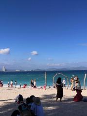 西岛景区是一个美丽的地方,在网上定的票,挺方便的,西岛的海水很蓝,先去玩了潜水,女友潜深了耳朵不太舒服,但是非常开心,回来沙滩边一起晒太阳捡珊瑚,女友好喜欢珊瑚,我们捡了好多,西岛的海水真的好清好清,值得一去!