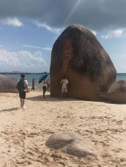 有很多情侣慕名来天涯海角,只为见证忠贞的爱情。不过有点小小遗憾的是,因为海平面上升,那块写着天涯海角的石头已经被海水淹掉一半,无法跟它合影了。