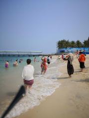 光村银滩位于著名的海鲜产地——儋州市光村镇,这里东与临高县相邻,北面濒临北部湾,沙质洁白细腻柔软,在阳光的照射下,晶莹剔透,银光闪烁,非常美丽。不过z感觉这里的垃圾比较多,没人管理,总的来说还是不错的,海滩够长够大,沙也细。