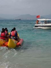 趁着放假去的分界洲岛,开始计划去的蜈支洲岛,后来问了酒店的工作人员路程还有推荐,他和我们说蜈支洲岛没有分界洲岛海水漂亮,而且商业化比较浓,人也比较多,广告打得响,然后建议我们去西岛和分界洲岛,然后我们在网上买了往返的船票,因为有老人小孩不打算玩娱乐设施,就存粹到处走走看看。