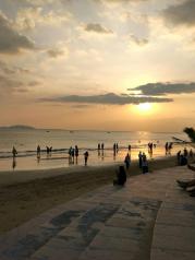 三亚湾度假区算是三亚性价比很高的海滩,水质虽然没有亚龙湾的好,沙滩也没那么细,但是不像亚龙湾那么商业化,沙滩贝壳很多,特别日落非常漂亮,那种美是无法言喻的,非常建议大家过来看看!