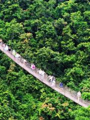 亚龙湾热带天堂森林公园的植物常年成长,因此在这里保留了一处热带原始森林,满眼绿色,非常养眼。主要景点就是索桥和玻璃桥,还有非诚勿扰电影中那个举办婚礼的地方,不过那里现在也没什么花也不是原来的布置了,所以没什么意思。