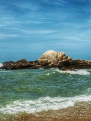 天涯海角像公园一样,就是为了天涯海角几个字去的,其实就是看石头,沙滩比较粗糙,石头超级多,而且这里的人人很多,拍照时要排队的。景区里有游艇出海这个项目,个人觉得没有参加的必要,在海边散步戏水踏浪,在礁石上吹海风看日落,看看美丽地热带植物就足够美好的了。