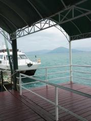 到达分界洲岛后司机为我们购买了门票、船票,我们乘坐游轮独自出发去往分界洲岛。在码头上遥望就可看见分界洲岛,所以快艇还没坐够就准备登岛了。分界洲岛被称为是浮在南海上的美丽遗世孤岛:蓝色的海水,白色的沙滩,硕果的椰林,彻底颠覆了我们这些北方人对大海的认识。