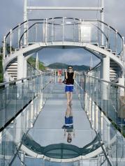 亚龙湾热带天堂森林公园具有“天然氧吧”之称,位于山顶的位置开辟了一条集观赏、体验于一体的全海景玻璃栈道. 漫步其上,既可以将整片亚龙湾的深蓝尽收眼底,还可以感受清风拂面和脚下雨林簌簌,呼吸着大自然赋予我们的清新空气,轻吟出银铃般的旋律,瞬间把恐惧抛到了脑后。