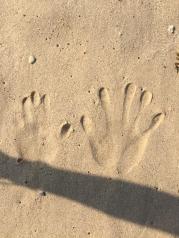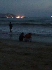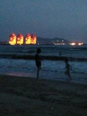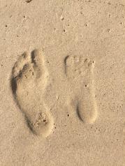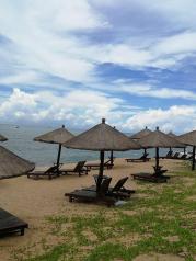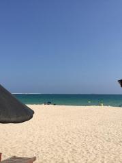 大东海确实高一档次,海更蓝,沙滩更干净,几乎没什么人。不过沙滩椅有人管理要收费,好像是100块随便躺,心疼钱没舍得,嘿嘿,没关系,我们就在旁边货架的阴影里坐着,吹着海风,无比惬意,有一种整个海都是属于我们的,包场的感觉,偶尔出去踩踩沙子和海浪,再被晒得跳着脚跑回来,啊哈,容易知足会更开心哦~~
