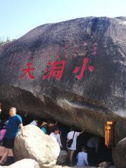 来到大小洞天景区,在VR取了电子导游器(押金100元需要现金,出门后免费退押金),拿着二维码扫码进入,非常方便。乘游览电瓶车到小月湾,再下车步行,看南海仙翁,陪老子望海,白云在天空,不老松在眼前。龙血树,很奇特,树干中间是空的,原来它才是南山不老松,寿命达几千年。没心没肺,长命百命,就是最好的福禄寿。