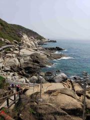 如果爬了天涯海角的礁石保安会吹哨把你叫下来的,当然出于安全可以理解。这里的海水很干净但日照充足哦!海滩不适合溜达都是贝壳小石子之类的,总体感觉还不错,唯一遗憾的是太早关门了,看日落是没戏了所以提前走了。