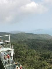 亚龙湾热带天堂森林公园风景很美,玻璃栈道很长,上山的车很好玩,有丛林的感觉,当年《非诚勿扰2》拍摄的房间,如今已成为景点的一部分,每天都有非常多的游客过来看这个电影中的房间,回味电影的情节,房间的视角真的超棒,下方就是亚龙湾海湾。