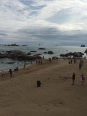 天涯海角风景挺好的,因为听很多人都在说不要上午去,因为早上还没退潮,所以下午去的太晚了,下午四点才到,因为带孩子去的,所以也没有玩太久,从天涯广场往西走,这段路很长。差不多1公里左右,可以到“南天一柱”石看看。