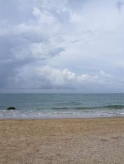 住在离亚龙湾不远的酒店,出了酒店,对面就是公共入海通道,步行几分钟就到了海边,虽然是清早,海边人也不少了。沙子没有想像的细,也挺好的,海水也挺清。太热,怕晒,待了一会儿汗大躺,没带泳装,赶紧走了,海滩玩就得有海滩玩的样子,以后准备好再玩。