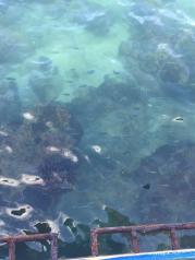 西岛景区不像蜈支洲岛,人不多,挺悠闲的,适合休假的心情。在网上买了两张西岛门票加往返船票加牛王岭门票,去到先去景区的八九窗口拿票,接着去码头坐船,大概坐二十分钟的路程吧。如果不玩水上项目的,也可以在海滨浴场那边沙滩走走,享受一下阳光和沙滩。