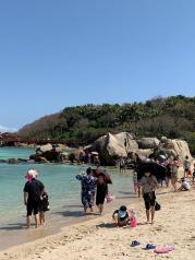 大小洞天在三亚市区的西面,路途比较远,坐公交25路终点就是景区大门口。看不到大洞天倒也罢了,那个小洞天你好歹也弄个完整的洞啊,结果弯身进去,瞬间就出来了。其他的景色都是人造景色,看看海就行啦。