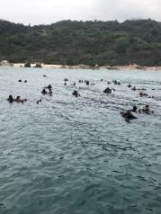 蜈支洲岛上以休闲和海上、海底娱乐为主,有极具特色的各类度假别墅、木屋及酒吧、网球场、海鲜餐厅等配套设施,岛上风景挺漂亮的,就是水上项目排队时间太长。建议大家早点去登船,要不然要排很长时间才能登船。