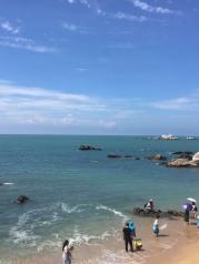 亚龙湾天下第一湾,海水湛蓝,沙滩细软,真的非常舒适惬意。水质不错,清澈见底,适合游泳及各类海上运动。这里的海湾水深流急,激浪拍岸,岸边则是怪石嶙峋,是攀崖探险的好场所,真的非常值得一游。