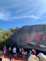 大小洞天自古因其奇特秀丽的海景、山景、石景与洞景被誉为“琼崖八百年第一山水名胜”,现已发展成为国家首批5A级旅游景区。在山上可以看到生长千年的“南山不老松”,还有很多名人提的字,老人看海石刻、鉴真群雕、小洞天,海景也不错。