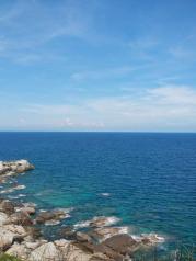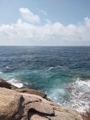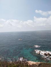 西岛景区的水很蓝很绿,到了山顶看下面好美啊,浪花拍打在礁石上,听海浪声,景美不胜收,没有玩潜水项目,就是想纯粹的看看海,吹吹海风,很是惬意,电动车去牛王岭,看到金牛奔海,和心爱的人手牵手走过情人桥,海誓山盟