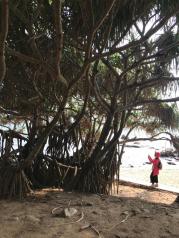 大小洞天的海边很好玩,可以捉到好大的螃蟹;沿海的走廊,安静美丽。江泽民题字的洞天福地。海边树上结的野菠萝,当时让我吃一惊,一直以为菠萝是长在地上的,怎么长在树上呢?后来问了司机师傅才知道,海南的野菠萝没人管,自己越长越高成了树,这种菠萝不能吃的,干而无味。