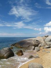 我们住在大小洞天不远的崖州新区,一来就看到大小洞天的指引路牌,所以此处成为本次三亚行的第一目的地。景区风景真的很不错,无论是山上还是海边,上午爬山中午逛海边,在小洞天拍了照就开始登山,山还是有点高度的,绕了一圈下来继续往里走,小月湾门口的沙滩踏浪的游客很多,很热闹。