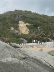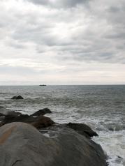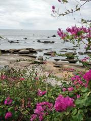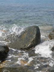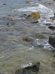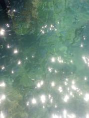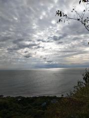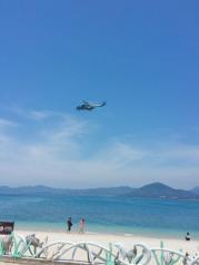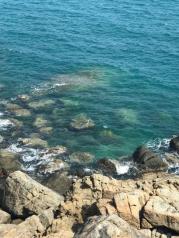 分界洲岛的海水真是美,从山上看下去,岸边都是绿蓝白的,一点都没有污染!真的!太安逸了!保护得太好了,希望下次,不,永远,希望永远都能这么好!站在英雄亭往南望去,远处海面出现一条长长的海水颜色分隔线,一边的海水蓝些,另一边略浅,难道分界洲连海水也跟着分界?