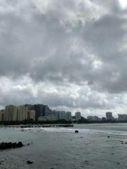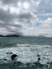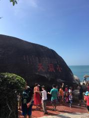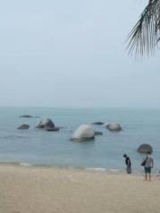 大东海的海岸线不是特别长,海水比亚龙湾要差一点,不过仍然是非常清澈的。沿海有好多星级酒店,也有很多民宿,各种档次都有。吃饭很方便,各种小吃冷饮也很方便。这次赶上台风过境,和台风来一次亲密接触,也是意外的收获。