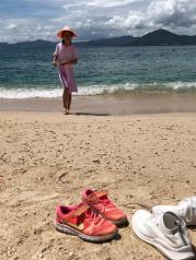 西岛景区的海上景致比我住的沙滩海景要美更多,海上湛然。上岛前务必穿沙滩鞋、换衣衣服、泳衣、防晒霜。岛上冲淋要另付钱,租一个小柜子10元,押金100元。岛上用现金居多。我和女儿在海边拍了很多照片,女儿拾到很多漂亮的贝壳,因为海水的不同,孕育了更美更漂亮的贝壳。我们都一一甄别过的。