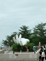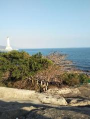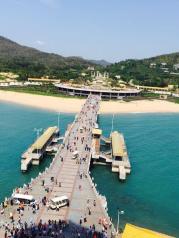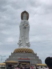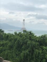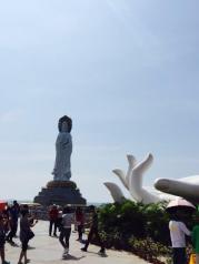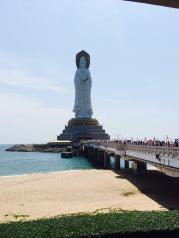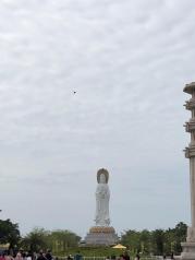 南海观音像坐落于离海岸约两百米的人工岛上,其实在飞机上就俯瞰到这座观音像,高大宏伟庄严神圣,海岸线风景优美,与神圣的观音像遥相呼应。
