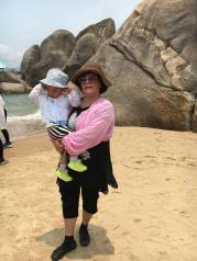 天涯海角淡季票价,电屏车15一人有点坑。。。通往天涯石的路正在施工,所以只能从沙滩上步行500米,可怜我们带小朋友的还有推车,在沙滩上推车太艰难了。景色还是不错,就是沙滩上太热,这还没到大夏天的