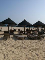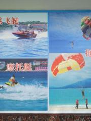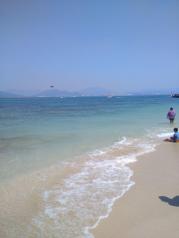 大东海真是不错,这里的沙子很细,水质非常好,海水是绿色的,非常美!淡季来这里的人很少,沙滩有卖椰子汁的,喝着椰子汁在沙滩椅上晒太阳真的很惬意。还有不少水上娱乐项目,摩托艇,滑翔伞等等。