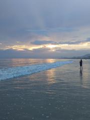 三亚湾度假区离凤凰国际机场不远,打车过来20元左右,沙滩绵延22公里,虽然水质没有亚龙湾好,但是这里住宿便宜,而且性价比高,海浪一层一层,风景也是非常美!个人感觉非常值得一游!