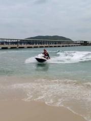 去年来大东海海边是晚上,不让下水,拍了几张照片就回公寓了,今年带孩子来的,感觉比去年好,天气还可以,孩子们体验了潜水,最高兴的是孩子们在海边捡贝壳,水很清,可以看到成团的小鱼,岸边不时有表演。大东海非常好。