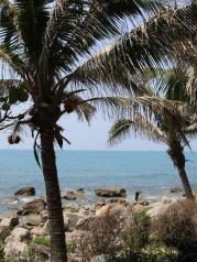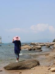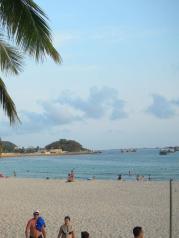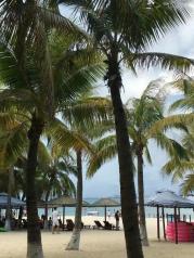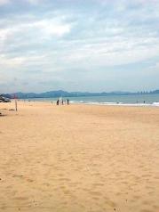 过三亚湾度假区真的是绵延17公里的沙滩海岸,许许多多的新人在拍照。走到三亚湾的沙滩,有许多许多碎石子和碎贝壳,不敢光着脚走,不然很疼。而海棠湾的沙子听说会没有这里的细,因为下午就要去海棠湾,所以没在三亚湾久留,走了几步就回岸上了。海滩边都有可以冲水的地方,很贴心。