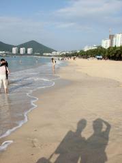 大东海虽然海水不算太蓝,但距离住处和商业区很近,也不需要门票。从住处到海边走路过去也不过10分钟,面积也很广。清晨和傍晚在这里散步很舒服,人不多。感觉是一种前所未有的平静,再多的愁绪,这一刻也化为乌有!