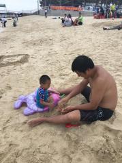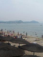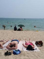 大东海的沙滩面积没有多大,建议大家还是穿洞洞鞋或者什么,这里的沙滩很扎脚,感觉都是珊瑚和贝壳的细碎片。海滩边一大半都是俄罗斯人,有种在索契的错觉,沙滩的质量不错的,沙子比较细,有专门的泳区,岸边就是各种海鲜,吃货们比较喜欢了。