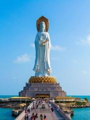 南山海上观音是去海南三亚旅游必须去的景点,交通也很方便。这里有108高的观音菩萨像,有清澈见底一望无际的大南海。还有绿树成荫的高山。海上观音的莲花座下为金刚台,金刚台内是面积达15000平方米的圆通宝殿。金刚洲由长280米的普济桥与陆岸相连。