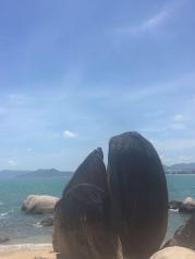 大东海的天气真心是不错,远离了雾霾,来到了大自然的氧吧。 可能是工作日的原因吧,沙滩上游人并没有想象的那么多,其中还有一些是歪果仁,慵懒的趴在沙滩上,晒着太阳。话说这太阳可真够厉害,本来懒得抹防晒,结果沙滩边上溜达了一小会儿,就觉得晒的我脖子后面的皮肤超疼,赶紧找了个阴凉,把防晒补上了。