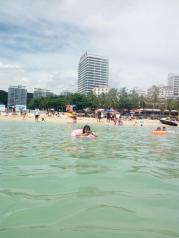 大东海真的很好耍,便宜又实惠。只是海水真的太咸了,进入眼睛感觉非常不舒服。大东海的海水很蓝很漂亮。第一次远远望过去的时候,我们都觉得不是大海,因为太蓝了。总之,大东海是个好地方。