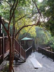 亚龙湾热带天堂森林公园内的交通需要依靠电瓶车,道路弯曲上下,有的地方很陡。没有为步行设置的道路,公园内的风景优美,但是人也很多,有名的索桥另收费,而且等候的人排着长长的队。山顶可以看到亚龙湾和海景,真的很美,波在各个景点之间,没有能歇歇。