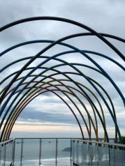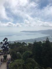 亚龙湾热带天堂森林公园的风景不错,观光车每到一站都会让你下车去玩,走了索道,也到了山顶俯瞰整个亚龙湾,风景还是很美的,山顶公园一下车就看到大佛石全海景玻璃栈桥。玻璃桥上到处都可以拍出美美的相片,一进去就有一个彩虹阶梯,接下来就是圆环,还有半弧。体验完玻璃桥一定要登上森林公园最高沧海楼,站在楼上可以俯瞰亚龙湾的全景、三亚湾、大东海、海裳湾。