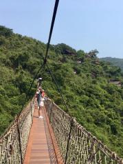 在网上买的亚龙湾热带天堂森林公园的套票,包含好多项目,走到车站坐车直接到达过江龙索桥,看了一下攻略森林公园景区是拍摄非诚勿扰二的主景地,葛优葛大爷和舒淇也在索桥上走过,索桥也叫爱情桥,走到桥中间看着亚龙湾的海景,此时此刻烦躁一年的心情突然放空了好想一直就这么呆着,好景不长桥上来了好多人赶紧闪人,这里真的好多人奉劝大家一句要想玩的好,一定要来的早、来的早、来的早。