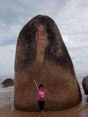 我们先参观了博鳌亚洲论坛永久会址,随后排队上游轮到玉带滩参观。一下游船真的好神奇呀,一边是静静的河,一边是汹涌澎湃的海,玉带滩上的游客很多,还提供一些简易的小亭子,让游客休息,我们在这里吃了一些自带的食品,就开始海边河边交替的拍照,真的是好爽啊。